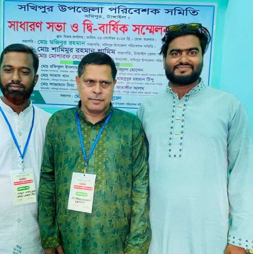 সখিপুরে পরিবেশক সমিতির দ্বি-বার্ষিক সম্মেলন অনুষ্ঠিতঃসভাপতি মজিবর রহমান সম্পাদক জুয়েল রানা।