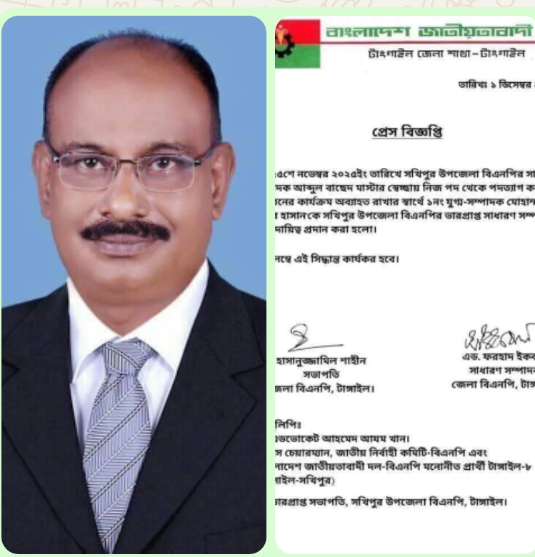 জেলা বিএনপির সভাপতি হাসানুজ্জামিল শাহীণ ও সাধারণ সম্পাদক এড. ফারহাদ ইকবাল স্বাক্ষরিত বিজ্ঞপ্তিতে দায়িত্বপ্রাপ্তির বিষয়টি আনুষ্ঠানিকভাবে জানানো হয়।